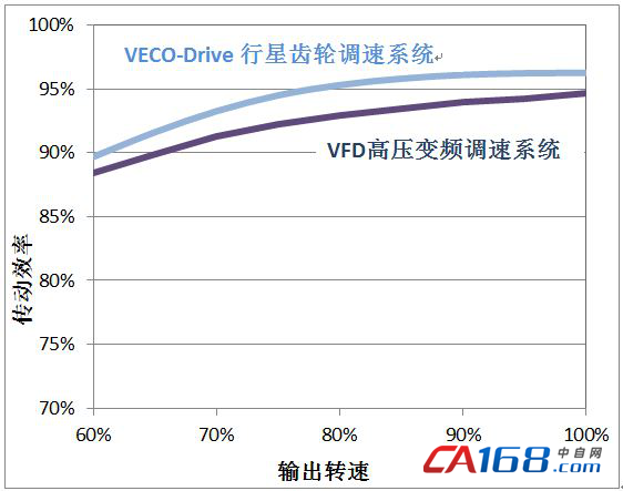 VECO-Drive是福伊特驱动推出的首款机电一体化调速行星齿轮,这一创新解决方案由机械行星齿轮和变频伺服电动机组成,是在有着600多台应用业绩的VORECON产品基础之上的进一步升级。VECO-Drive机电一体化调速之星是最为高效的调速驱动装置。在采用伺服电动机驱动行星齿轮之后,其功耗降低为很小的一部分,从而使得驱动效率最高可达97%以上。如此一来,既节省了宝贵的能源同时又降低了日常运营费用。