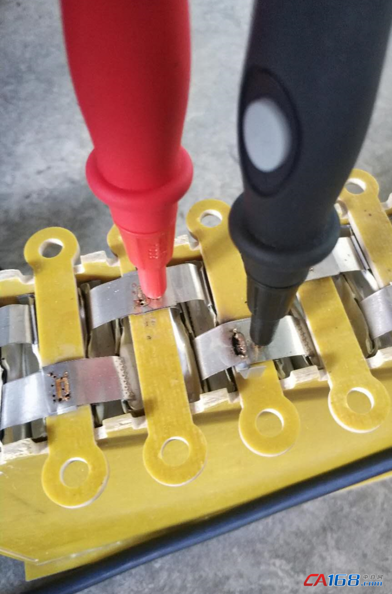 我们使用福禄克的BT508进行电芯PACK时的内阻测试。电芯的连接一般简单分为焊接和压接两种,由于规则限制焊接方式一般只能是激光焊接或超声波焊接。我们通过对一些资料的查询发现,压接的接触阻值一般在160μΩ,激光焊接一般在90μΩ。但是通过导电胶的处理接触阻值使能够被有效地控制在100μΩ附近。下图是队员在16电池上进行的先期测试,我们发现涂有导电胶后接触阻值可以下降27%左右。这样的接触阻值是我们完全能够接受的,所以我们认为在成本允许的范围内,压接是目前我们最好的方案。