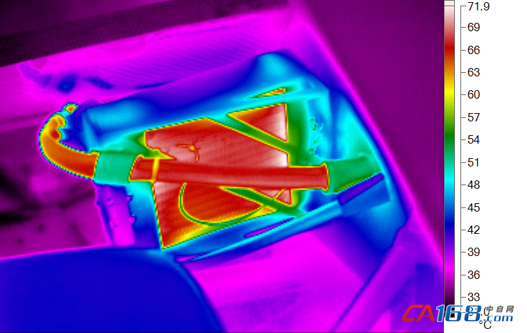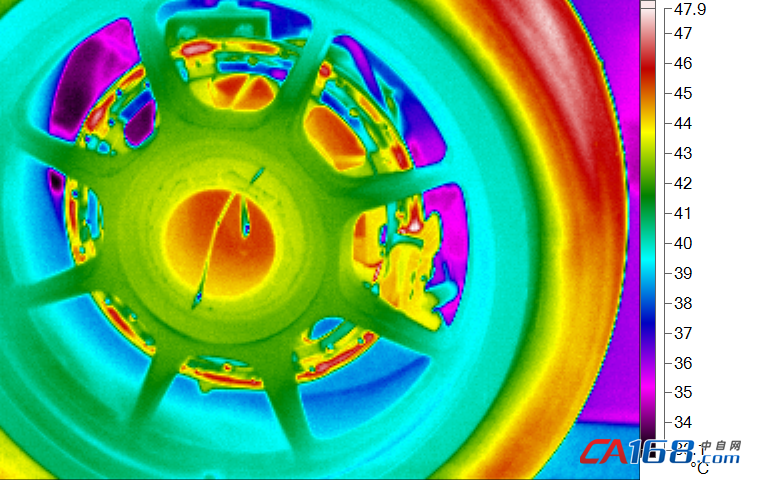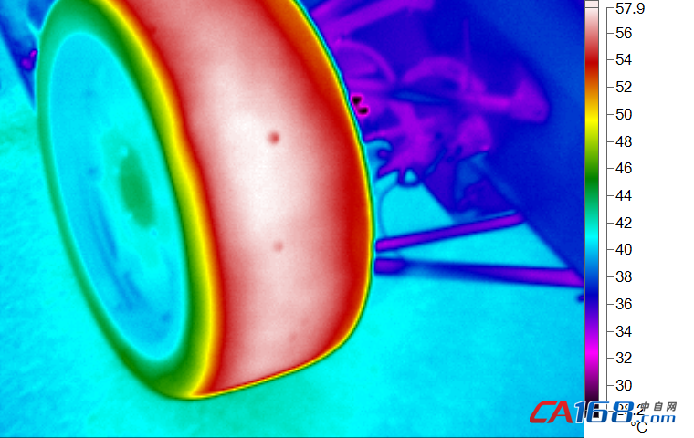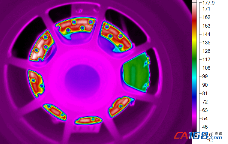 今年我们自己设计加工了电机控制器的散热系统,我们使用Ti32红外热像仪测试了轮胎,制动盘以及电机控制器散热系统的温度。