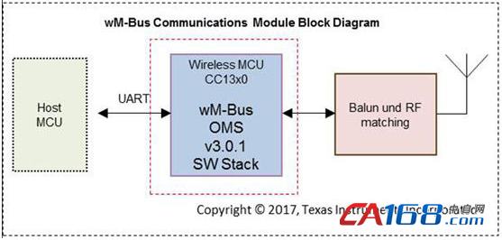 图示1-大联大世平推出TI低功耗无线M-Bus通信模组参考设计解决方案的系统方案图
