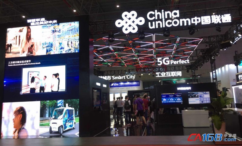 联通的展台,以智慧串联了智慧城市、智慧工厂,延伸未来的5G网络切片、5G网络直播、5G车联网、5G远程医疗……