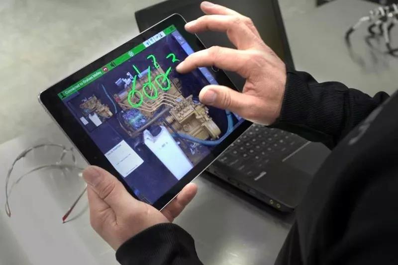 通过公司开发的AR App,维修人员可以在智能手机、平板电脑甚至AR眼镜上查看设备问题,通过交互式可视化操作,完成维修工作。