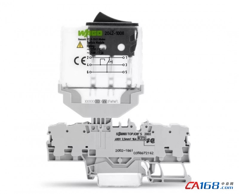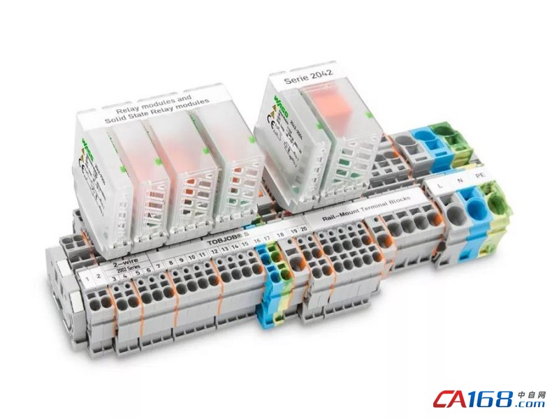 ✔ 将继电器模块集成到WAGO轨装式接线端子系统中可节省布线和大量空间。