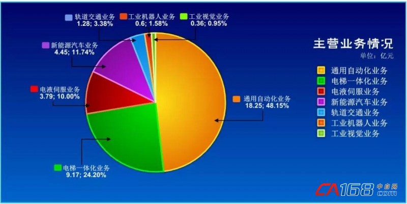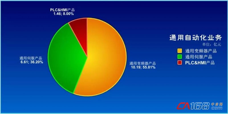 公司通用自动化业务实现销售收入 18.25 亿元,同比增长 32.87%(其中通用变频器产品实现销售收入 10.19 亿元,通用伺服产品实现销售收入 6.61 亿元, PLC&HMI 类产品实现销售收入 1.46 亿元);