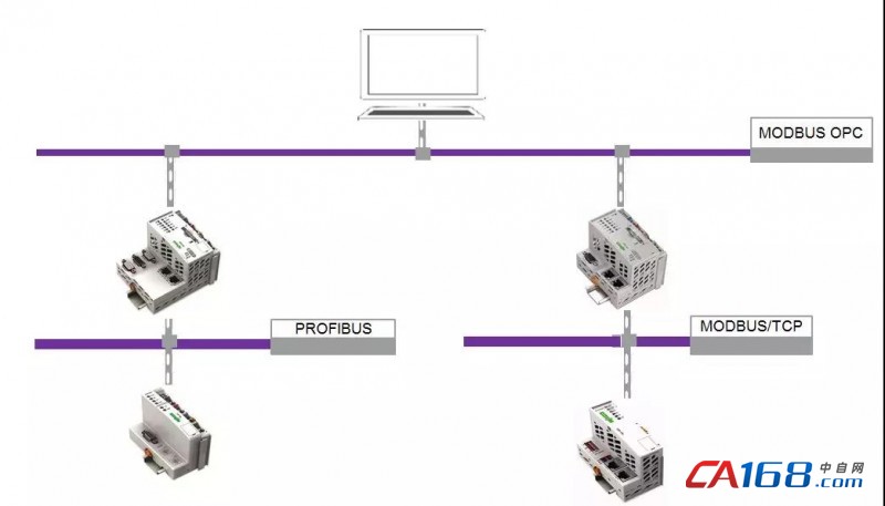 WAGO万可PFC200系列总线控制器可以解决此项目的需求,新出品的 750-8208主控制器 既可以作为PROFIBUS主站,通过相应的同时又具备两个集成的网口用做MODBUS-TCP/IP通讯,在对底层I/O信号进行采集的同时通过自己的以太网接口为以满足上位机的软件以OPC方式对MODBUS变量的读取和监控。