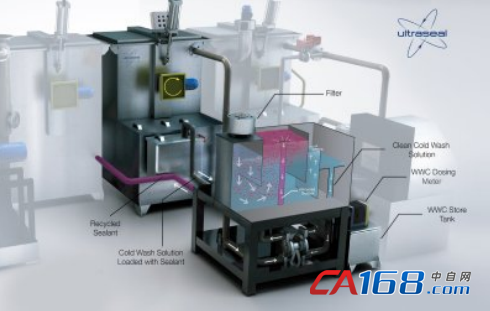 Ultraseal循环回收系统与水洗缸形成完全闭环的系统,并且无需改变浸渗工艺本身。浸渗液循环回收系统(SR