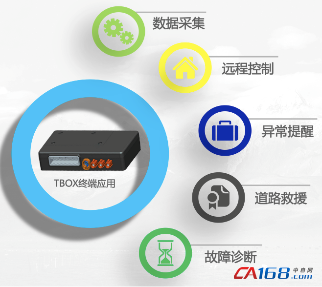 另外,T-BOX还可以实现以下功能:提供车况报告、行车报告、油耗统计、故障提醒、违章查询、位置轨迹、驾驶行为、安全防盗、预约服务、远端找车、利用手机控制汽车门、窗、灯、锁、喇叭、双闪、反光镜折叠、天窗、监听中控警告和安全气囊状态等。