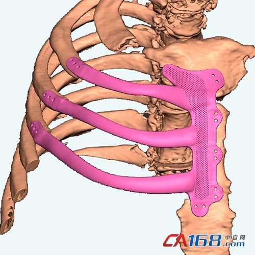 Heather Goodrum(生物医学3D技术人员)和Peter Llewelyn Evans(莫里斯顿医院颌面外科实验室服务经理),利用Maggs的胸部CT扫描数据设计植入体。然后,雷尼绍根据医院的技术参数,采用增材制造技术制作钛合金植入体。