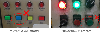 1)启动/接通操作按钮颜色应为白、灰、黑或绿色,优先使用白色,但不允许用红色。
