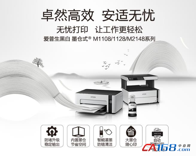 爱普生充分认识到了节能环保对于商用打印机的重要意义,推出全新M系列黑白墨仓式®打印机,新款产品延续了爱普生“省、小、精”的理念,采用内置一体化墨仓设计,搭配无需预热的控制系统,不仅尺寸更加紧凑小巧,同时还从多个方面强化了产品的节能和环保性能,为办公一族打造更洁净安全办公空间。