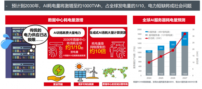 作为全球屈指可数的同时拥有SiC、GaN、Si及LSI业务的半导体制造商,罗姆通过与全球头部企业建立的合作伙伴关系,致力于为AI服务器市场贡献力量。