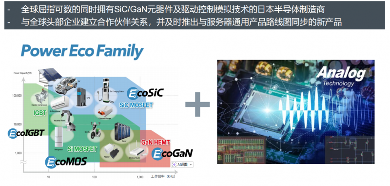 罗姆与众多电源设备厂商建立深度战略伙伴关系,其EcoGaN™产品被台达电子Innergie品牌的45W输出AC适配器“C4 Duo”采用,双方已缔结电源系统用功率元器件战略合作关系。此外,罗姆的EcoGaN™被村田制作所Murata Power Solutions的AI服务器电源采用,科索3.5kW输出AC-DC电源单元“HFA/HCA系列”采用罗姆的EcoSiC™。