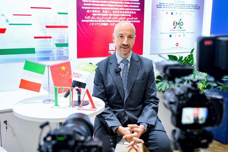 4月20日上午,意大利对外贸易委员会上海代表处首席代表戴志龙先生(Mr. Fabio De Cillis)受邀出席展会开幕式,并在展台的媒体采访环节分享了中意贸易发展的看法:“两国市场之间存在良好的互补性。例如,我们的产品可用于中国本地生产的机器。因此,这样的展览活动无疑在意大利和中国市场之间架起了一座桥梁。我们与行业协会携手,尽最大努力为意大利企业提供支持,包括在中国销售产品或是选择带着其高质量产品来到中国。”