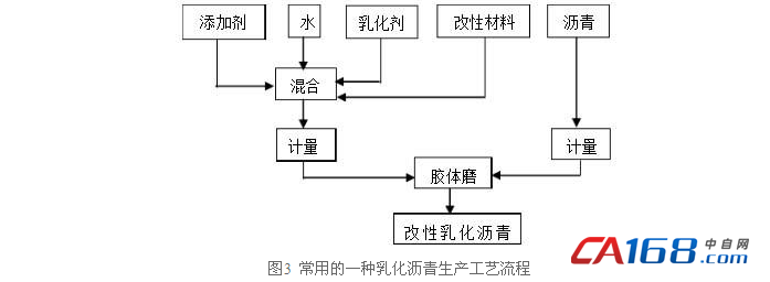 下图为乳化沥青生产过程中的一种生产工艺流程,我们采用了这种生产工艺,配以可编程控制器、变频器、流量计、定量泵等采用计算机技术的控制单元,在非常大的程度上改善了现有的生产状况,提高了产品的质量。