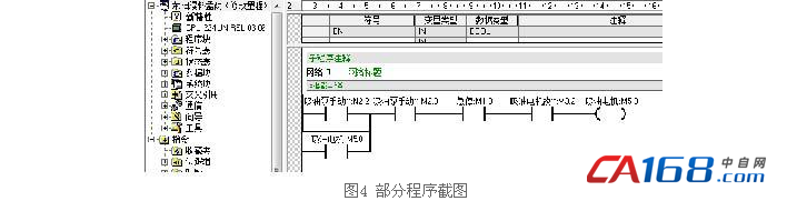 亿维的224 CPU 自带两个通信口,一个接口连接接触摸屏,一个接口用于程序调试,两个通信口互不干扰,给调试带来了很大的方便,不但能够通过触摸屏控制设备,监控设备运行状况,还能通过STEP 7 MicroWIN SP9 编程软件对PLC 进行监控,大大方便了设备的调试工作,提高了工作效率。