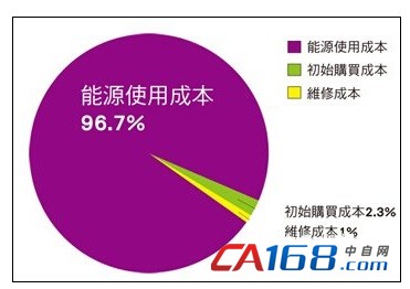 工业马达虽仅占全球马达使用量的一小部分,不过因耗电量惊人,已使其成为国际上马达能源效率主要管制对象(表1)。据了解,以一个11千瓦(kW)、效率为IE3的工业感应马达而言,当该马达每年运转四千个小时,并连续运转20年之后,其初始购买成本仅占马达生命周期的2.3%,而后续须付出的能源使用成本占马达生命周期的比重则高达96.7%,耗电量极为惊人(图1)。