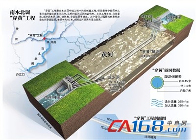 “穿黄”工程于2005年9月份开工,施工从黄河北岸的焦作市温县赵堡镇陈沟村村西开始,工程采用盾构技术进行河底隧洞的挖掘。