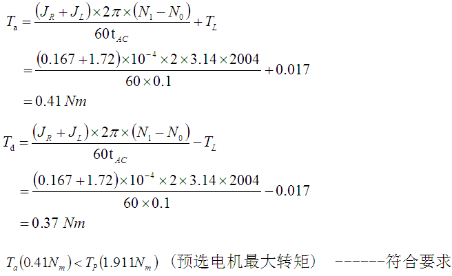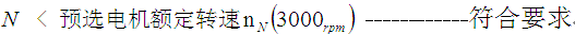(说明预选电机各项参数指标在合理使用范围内,预选电机60BLA20-30(200W)型号电机可以使用。)