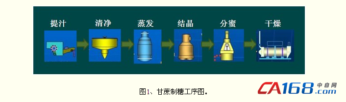 甘蔗制糖工序一般包括提汁、清净、蒸发、结晶、分蜜和干燥。具体如下图示: