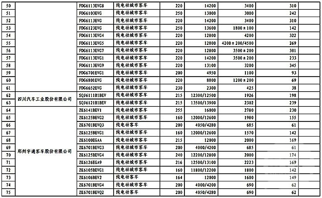 入选此次目录的纯电动客车企业: