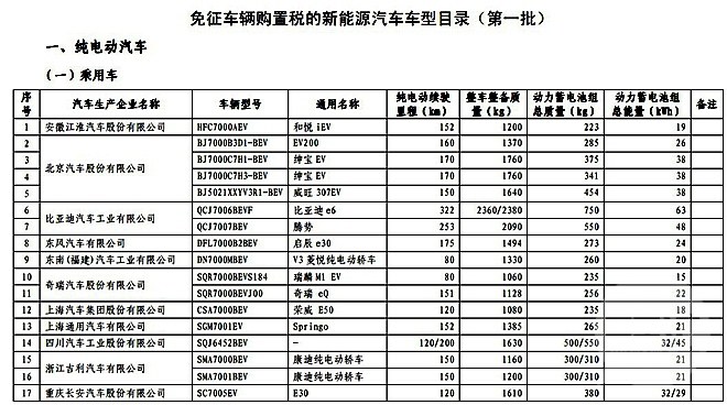 入选此次目录的纯电动乘用车: