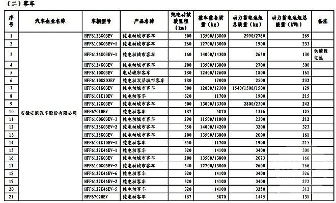 安凯客车2款、北汽福田的4款、宇通客车的2款、南车时代1款
