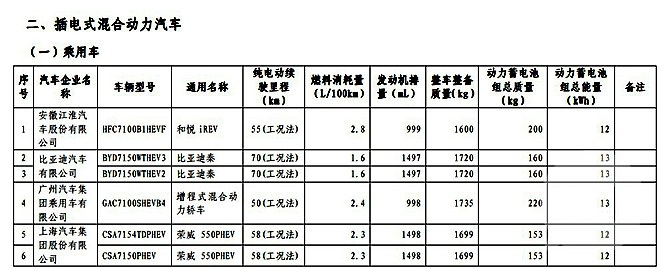 入选此次目录的插电式混合动力车: