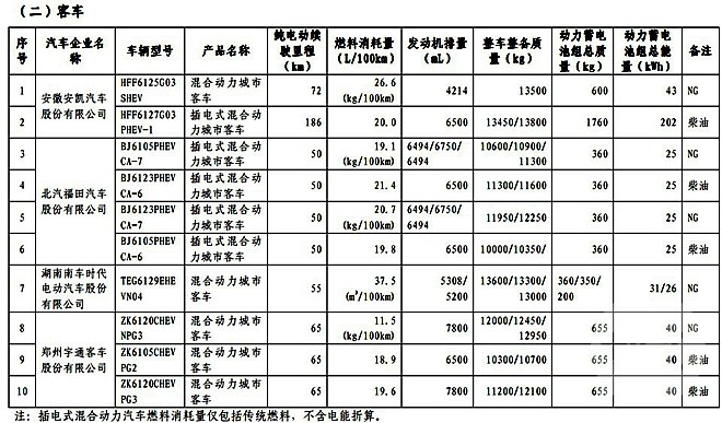 入选此次目录的插电式混合动力客车企业,