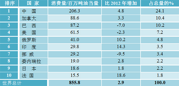2013年在一次能源消费中水力发电发展最快,中国居世界第一位。根据BP公司《Statistical Review of World Energy 2014》报道,中国水力发电居世界第一,占世界总量的24.1%。