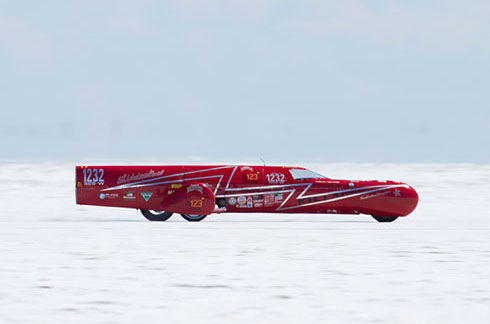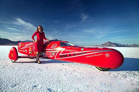 9英尺长的电动电池电力,主要来自科罗拉多的风力以及运行时的混合生化柴油发电机。玻璃纤维制成的头锥体型,采用了最新的nova kinetics超低风阻系统,这种材料能够让这辆总重量1540磅的战车,发挥最高的速度优势。