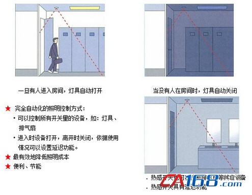 3、对于入口坡道、敞开式休息厅等室外或采光良好的区域,还可使用带有照度感应能力的热线传感器头,这样当室内照度水平相当时,即使人经过,灯具也不会点亮,最大限度利用自然光节能。传感器还具有10秒至30分钟的延时设定功能,可根据被控区域的使用情况任意设定,杜绝了灯具频繁开关灯具对其寿命的损害。