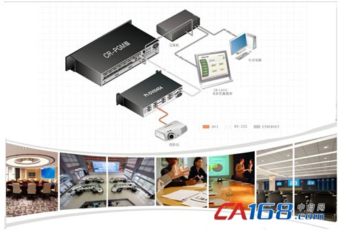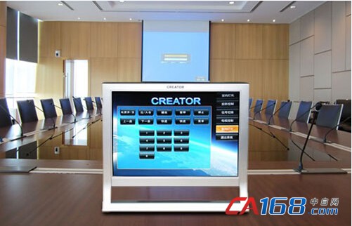 CR-LAN15可编程触摸屏,完美兼容CREATOR快捷高性能网络化可编程控制主机CR-PGMIII,轻松一键,完美掌控现场声光电系统,只需一屏,即可对现场灯饰的开关、灯光的明暗度调节、投影机的开关、投影幕布的升降、空调温度调控、会场显示设备开关、显示内容切换、门禁开关等等方面进行智能掌控。在实际的运用中,根据现场信号的类型及输入输出信号的数量,可配合CREATOR快捷对应的信号切换与传输系统,构成了针对各类商务会议室、指挥控制中心、多媒体会议厅等场所的完美解决方案。