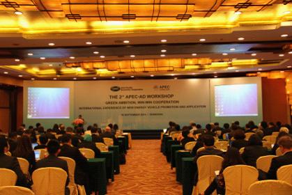 各经济体代表围绕该本次研讨会主题“新能源汽车推广应用的国际经验”进行深入研讨。2013年第19次汽车对话会议,中国提议开展“都市场景下规模可充电电动汽车与电网及交通系统集成”专题研究,得到美国、马来西亚以及中国台北的积极相应,并被列入2013年APEC研究项目。研讨会上,中国北京理工大学、美国能源部、马来西亚汽车研究中心和中国台北经济研究院专家就“都市场景下规模可充电电动汽车与电网及交通系统集成”进行了研究成果汇报和经验分享。来自美国、韩国、日本、中国、俄罗斯以及国际清洁交通委员会的政府官员、专家学者也就各相关经济体内新能源汽车及配套设施的发展情况、政策法规、关键技术以及未来的发展规划等发表了专题演讲,并与参会代表开展了深入讨论。