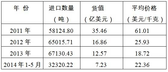 表1:2011年-2014年5月多晶硅硅料情况