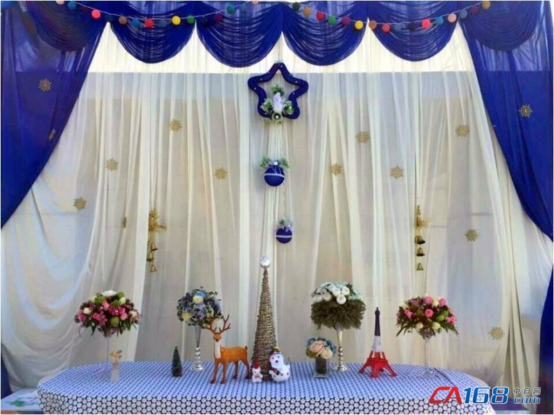 蓝白两色的主题台,简洁大方,如同威纶通遨游于蓝天之上,穿梭于白云之间,主题桌上的各种创意小装饰,满满的呼应了马上就要降临的圣诞节。