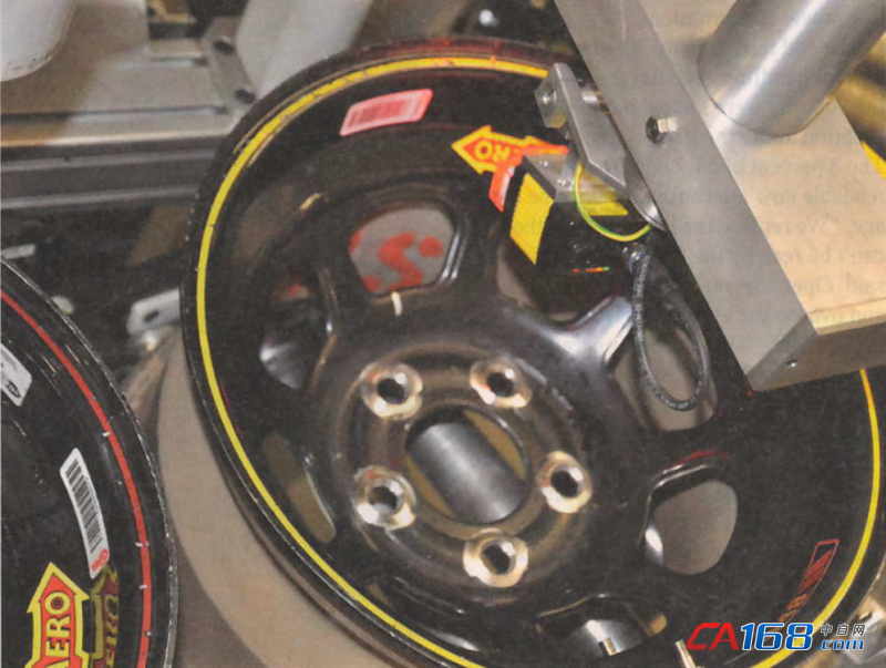 图1:任何两个车轮上的条码或标签位置并不完全相同。