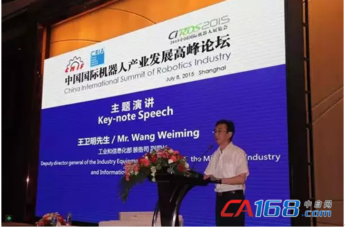 2015年7月8日,“2015中国国际机器人产业发展高峰论坛”在上海举行。随着国务院常务会议审议通过《中国制造2025》以及工业和信息化部《关于开展2015年智能制造试点示范专项行动的通知》的公布,中国制造业将迈入新的发展阶段,建立和发展中国智能制造标准化体系和公共服务平台的进程将进一步加快。在此背景下,由工业与信息化部指导,中国机械工业联合会(CMIF)、中国机器人产业联盟(CRIA)共同主办的“2015中国国际机器人产业发展高峰论坛”较之往年更加受到社会各界的关注和重视。