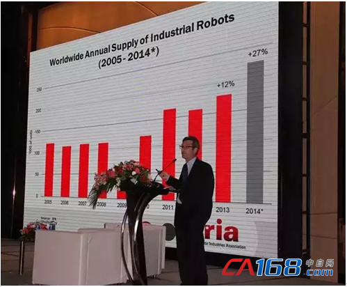 美国机器人协会(RIA)会长杰夫·博恩斯坦先生就北美机器人市场为大家做了报告:2015年第一季度北美机器人市场的订单量为6,895台,同比增长16%;订单总额4.35亿美金,同比增长29%,发货量为6,997台,同比增长60%;货款总额达3.69亿美金,同比增长24%。