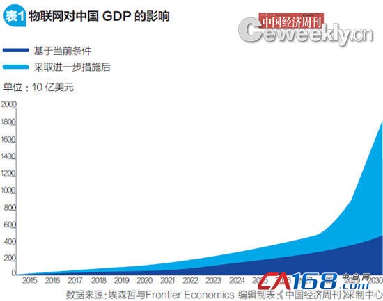 分析显示,在中国当前政策和投资趋势的助推下,未来15年,仅在制造业,物联网就可创造1960亿美元的累计GDP(见表3)。
