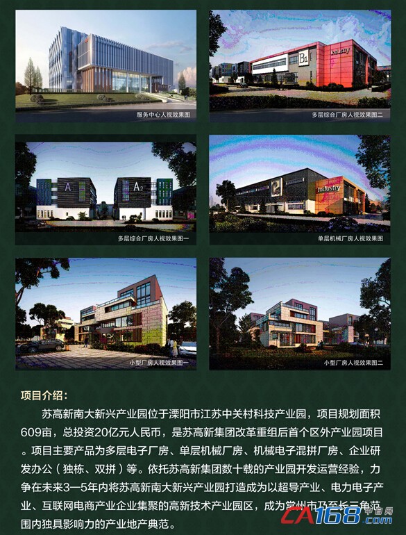 苏高新南大新兴产业园项目位于溧阳市江苏中关村科技产业园内,规划面积609亩,项目建设投资约20亿元,是苏州高新科技发展有限公司鼎力打造的首个跨市级产业园。苏高新南大新兴产业园整体定位为华东地区品质最优、影响力巨大的节能环保产业园,着重引进节能环保、智能电网、高端装备制造、新材料、电子信息等优势支柱产业企业项目。该项目建设周期为5年,将分三期建设,总建筑面积达44万平米,建成后将成为集商务办公、科技研发、教育培训、科技金融、产学研合作平台、科技服务平台等功能于一体的绿色、智慧、生态、节能型科技示范园。