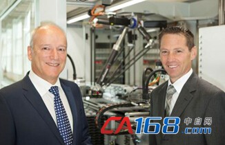 图5:PeterGucher(总经理,左)和GeraldHaas(国际工业管理负责人)对贝加莱智慧工厂感到骄傲。