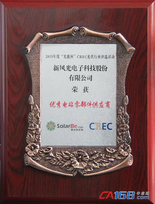 据介绍,本年度"光能"杯光伏行业奖评活动由中国社会科学院、中国光伏行业协会、国家太阳能光伏产品质量监督检验中心、无锡新能源商会、Solarbe索比光伏网联合发起举办,以树立行业标杆并推动整个行业健康理性发展为目标,全面关注、总结光伏全产业链的创新型技术、产品及光伏产业创新的商业模式。新风光公司SVG产品凭借在光伏市场的优异表现,赢得了组委会和广大票选网友的认可。