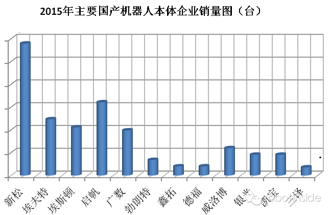 从具体企业的销售数据来看,2015年国产机器人本体企业较去年有很大进步,部分企业也取得不错成绩,但是存在的问题是销量增加,却并未给企业带来更多的利润,单品产品的毛利润2015年下降15%左右。当然,2015年也有一些新进本体厂商,产品尚处在研发与使用阶段。