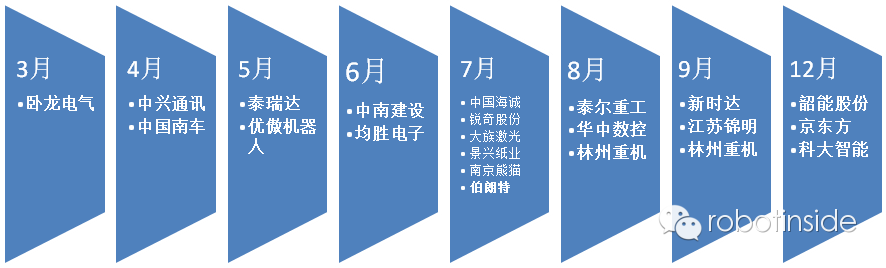 《中国制造2025》提出要“围绕汽车、机械、电子、危险品制造、国防军工、化工、轻工等工业机器人、特种机器人,以及医疗健康、家庭服务、教育娱乐等服务机器人应用需求,积极研发新产品,促进机器人标准化、模块化发展,扩大市场应用。”工信部《关于推进工业机器人产业发展的指导意见》更是细化了具体战略目标:“到2020年,形成较为完善的工业机器人产业体系,培育3-5家具有国际竞争力的龙头企业和8-10个配套产业集群;工业机器人行业和企业的技术创新能力和国际竞争力明显增强,高端产品市场占有率提高到45%以上,机器人密度(每万名员工使用机器人台数)达到100以上,基本满足国防建设、国民经济和社会发展需要”。无论是从顶层设计还是具体产业规划,机器人产业都受到了极大的关注与支持,发展目标和路径清晰,发展前景广阔。受益于国内机器人巨大的市场空间和不断利好的政策的刺激,资本市场工业机器人板块挂牌、上市、并购潮流涌动,资本、技术和市场加速整合。上述整合呈现如下几个特征:一是上市公司积极参与海外并购,吸收国外优质核心技术,加速布局核心零部件及高端机器人市场。我国资本市场纯机器人企业PE水平长期保持在40-50倍,高于国外20-30倍行业平均水平,为收购方提供丰富的资金来源。部分上市公司利用资金优势加速布局,展开对部分核心零部件和高端机器人市场的争夺。二是部分优质中小企业利用新三板发展机遇,挂牌融资,在部分细分行业市场加速布局,差异化发展。我国有数百家针对不同细分行业应用领域的工业机器人公司,这些机器人公司通常为依赖在某一细分行业的项目经验积累成长起来的系统集成商,这些公司受制于成本、定价等方面的劣势,往往面对缺乏资金、产能不足的情形,而随着我国多层次资本市场的建设,新三板市场为此类企业提供了一条适合的融资及迅速发展的路径,预计未来一段时间,将逐步涌现各细分行业优质中小型工业机器人企业。综上,未来3-5年,中国工业机器人行业处于产业转型升级需求释放、国家政策红利凸显、资本市场助推的机遇叠加期,工业机器人行业孕育重大投资机遇。