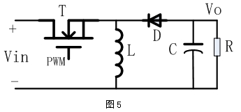 Buck-Boost电路拓扑,有时又称为Inverting,其典型的电路结构如下图5所示: