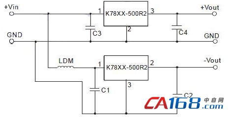 因此,用2只K7812-500R2的产品,实现BUCK与BUCK-BOOST电路相结合,可以得到±12V输出,低的纹波和噪声可以给运放进行供电。