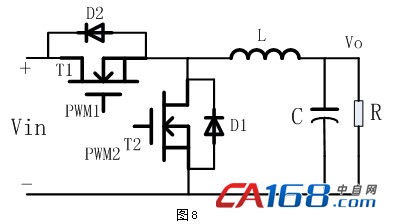 当T2管截止时,T1管与D1、L等器件构成了Buck型降压电路,可以实现对后级的负载进行供电;反之,当T1管截止,T2管与D2二极管、L等器件构成了Boost升压电路,对前端电源进行能量补充。目前对T1和T2管的控制以模拟方式控制相对还是比较困难,均是以数字控制方式为主。