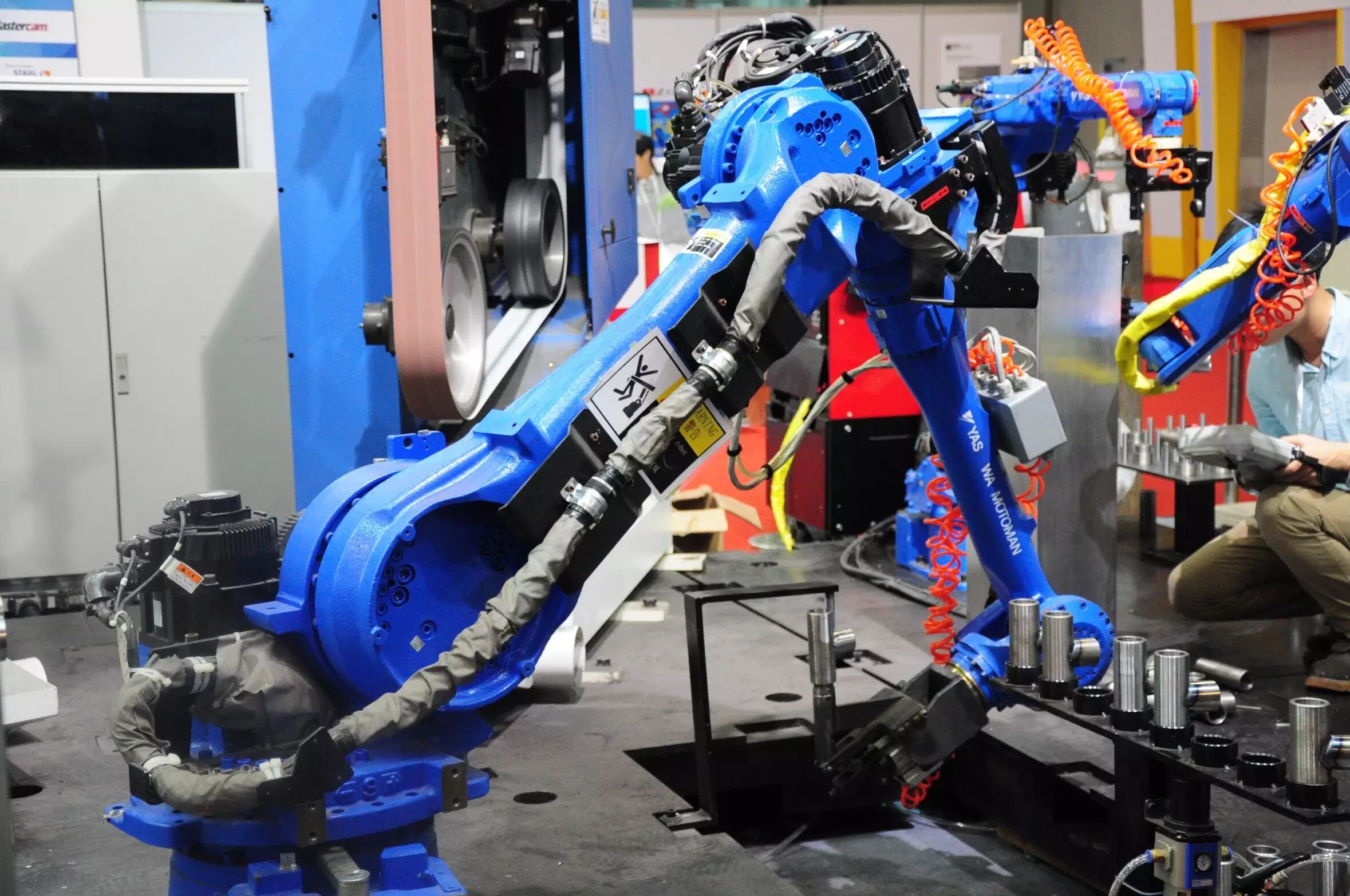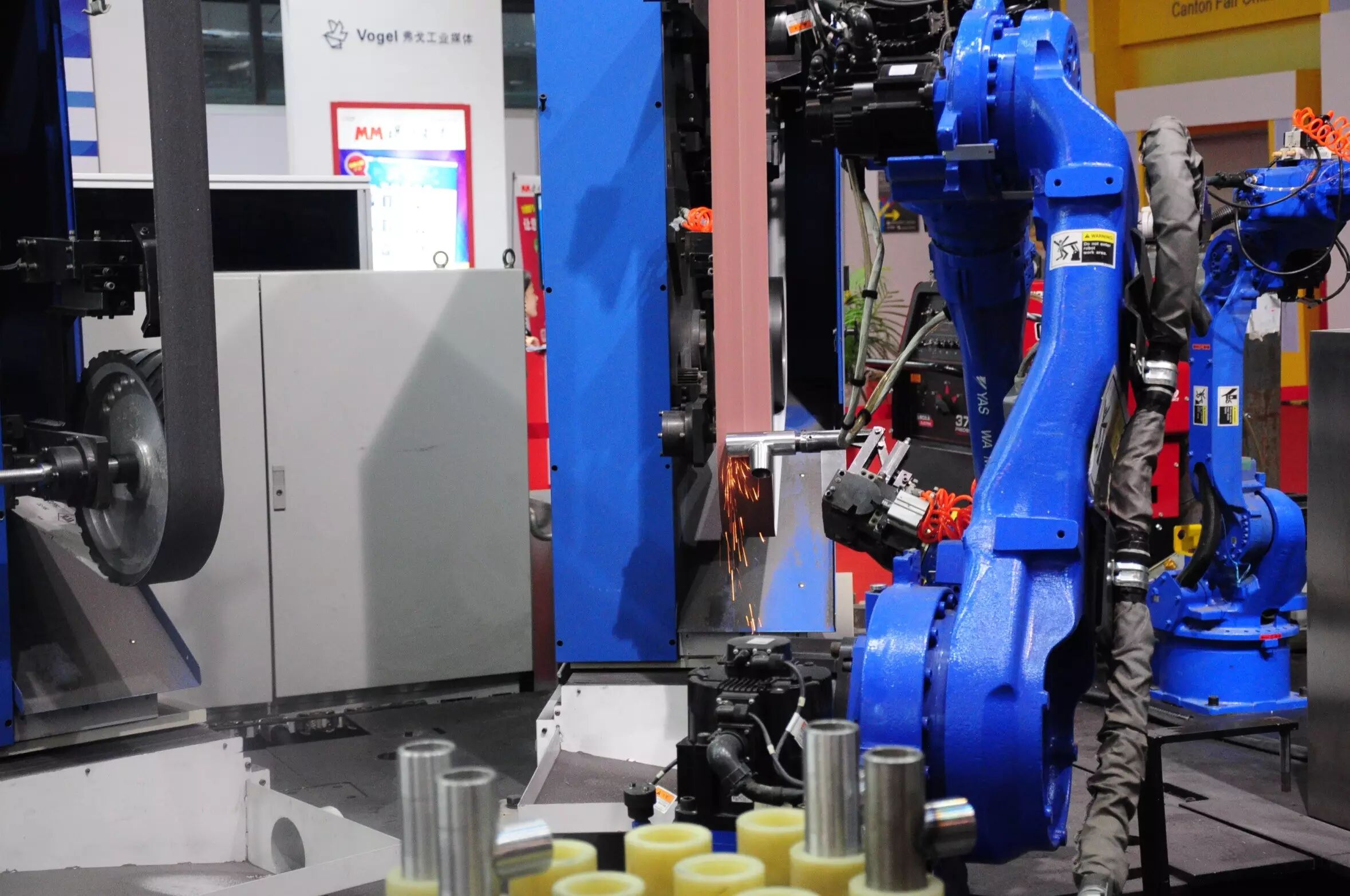 看见没?热情如火花!我在打磨器材零件。