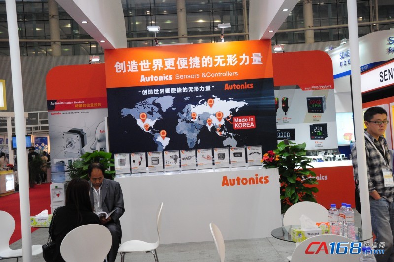 展会上,奥托尼克斯展示了传感器类和高功率超小型化控制器主要产品:Autonics接近开关、光电开关、光纤传感器、旋转编码器、温控器、计数/定时器、转速/线速度表、显示单元(BCD码显示)、传感器控制器、电工面板表、步进电机与驱动器,观众可在模拟面板上近距离参观。