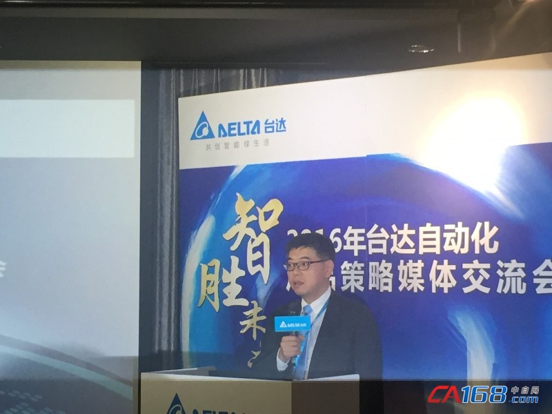 中达电通股份有限公司副董事长尹镟博先生首先向嘉宾致辞,欢迎众多媒体朋友共同探讨、分享智能制造的美好未来,在“中国制造2025”规划指引下,中国从制造大国向制造强国迈进,以智能制造来抢占未来制造的制高点。他指出,智能制造的核心是“智能化”,主要表现在生产过程中系统能够像人一样做出判断和分析决策等行为,可以将智能制造视为工业自动化深入发展的成果。作为工业自动化的领导品牌,台达在推动智能制造有先天优势,现在已经形成全套智能化产品。